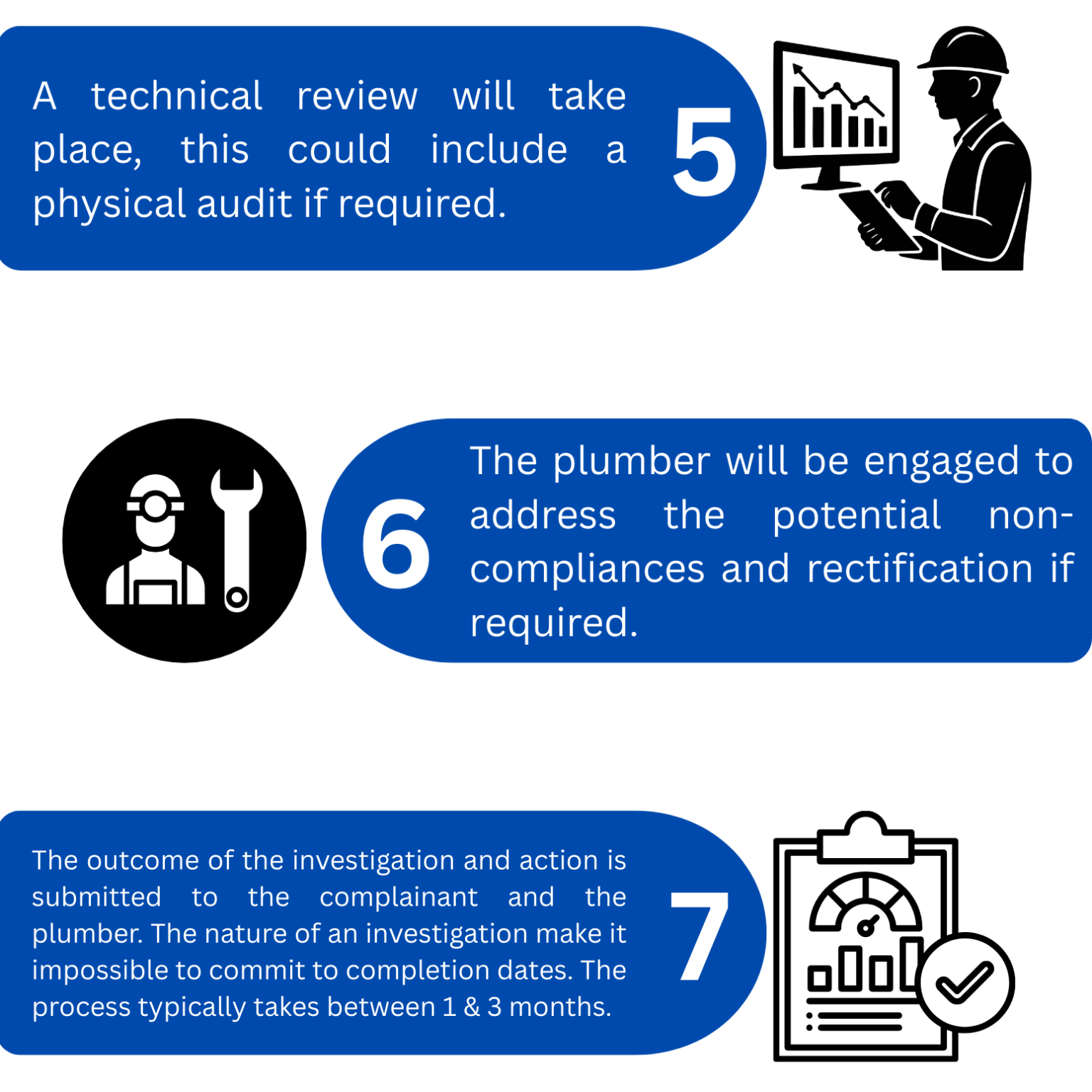 Uphold the standards of the plumbing industry by holding practitioners accountable. Your concerns matter and your voice is powerful, and together, we'll build a plumbing industry that thrives on accountability and excellence.
